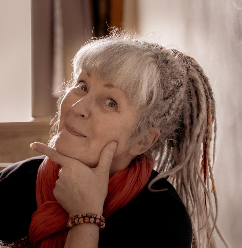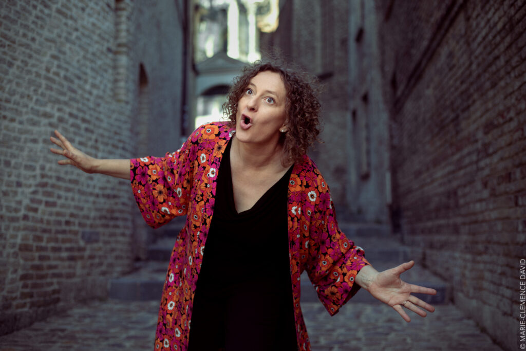 Formée d’abord au théâtre, Françoise est depuis toujours passionnée d’histoire, fascinée par les cultures diverses et les multiples manières dont l’humain s’exprime à travers les civilisations. Le conte s’est imposé à elle comme une évidence, une manière de partager ses rêves, ses passions, ses désirs, ses utopies, ses colères… un univers dans lequel elle chemine depuis 30 ans, explorant récits pour grandes et petites oreilles, les mythologies (Grecque, mésopotamienne, égyptienne) et construisant avec des complices musicien.es des spectacles mettant en lumière des aspects de notre histoire collective.Mais elle l’avoue, ceux qui furent ses guides-initiateurs et l’amenèrent en ces lieux qu’elle n’imaginait pas sont ses enfants : – Maman, raconte une histoire qu’il y a dans ta tête ! Et c’est ainsi que tout a commencé : « Il était une fois… »